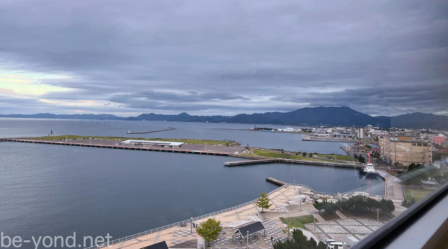 締めの食事に選んだのは、アスパムの10階にある郷土料理店「みちのく料理 西むら」。青森港を一望できる窓際の席へ案内していただきました。刻々と色を変える海と空を眺めながらの食事は、それだけで特別な時間です。