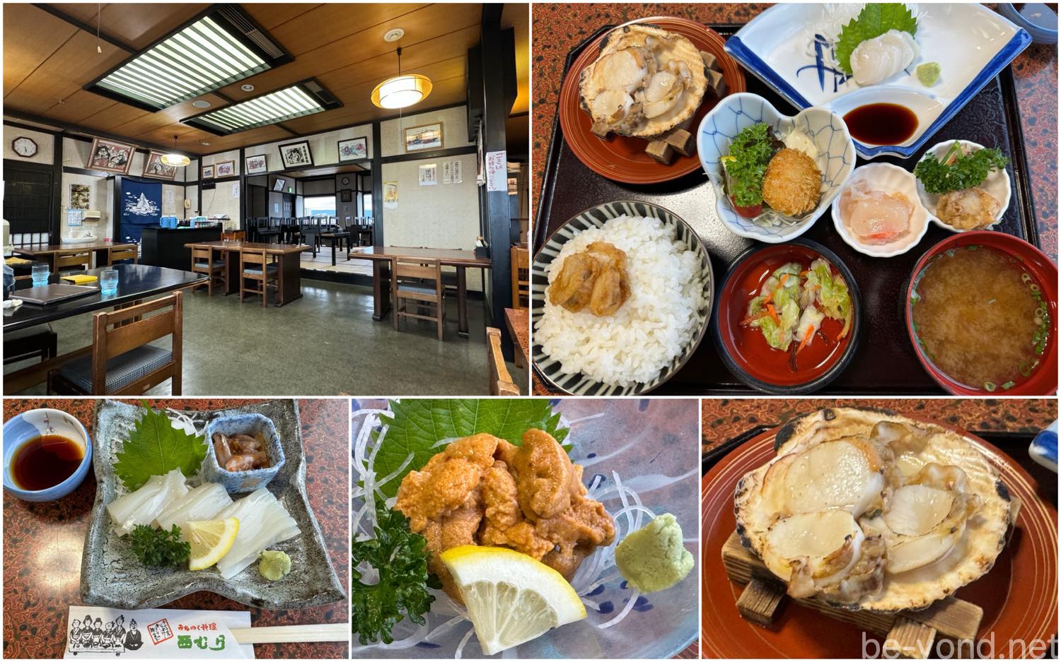 注文したのは、生ウニとイカのお刺身の単品、そしてホタテの刺し身、塩焼き、フライ、塩辛、唐揚げが揃った贅沢なホタテづくし定食。小ぶりながら、口の中でとろける生ウニの甘みは格別でした。近年値上がりが目立つホタテを、これほど多彩な味わいで比較的リーズナブルにいただけたことにも満足。海を目の前に、その恵みを味わう…。旅の終わりにふさわしい、青森らしさを存分に堪能するひとときとなりました。