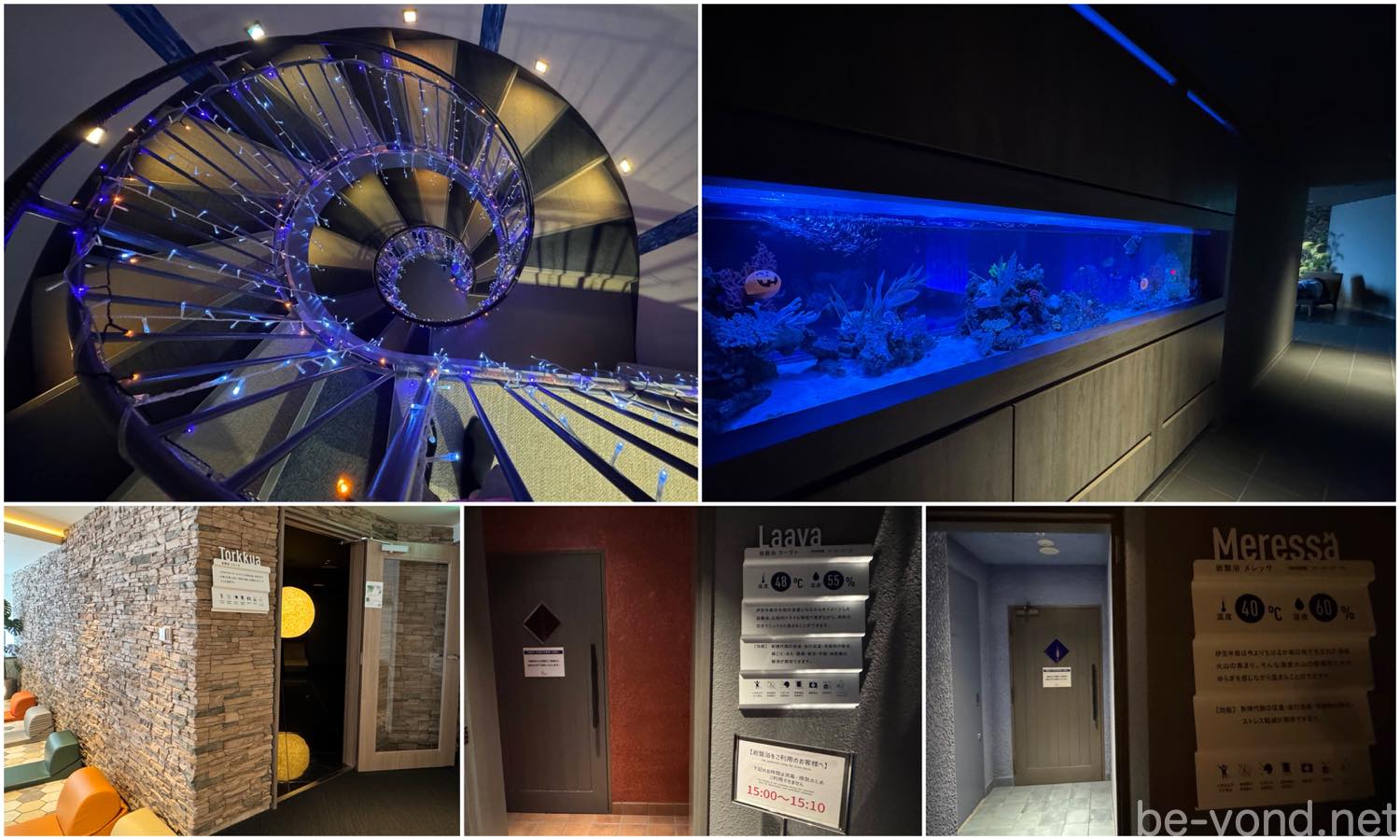 3階オーシャンラウンジの奥に、海中をイメージした青色の「Meressä(メレッサ)」(室温 約40℃・湿度 約60%)と、火山をイメージしたレッドの「Laava(ラーヴァ)」(室温 約48℃・湿度 約45%)の2種類の岩盤浴があり、今回は水槽が設置されたメレッサを利用。遠赤外線効果で体の芯からじんわりと温まり、その心地よさに思わず寝落ちしてしまいました。