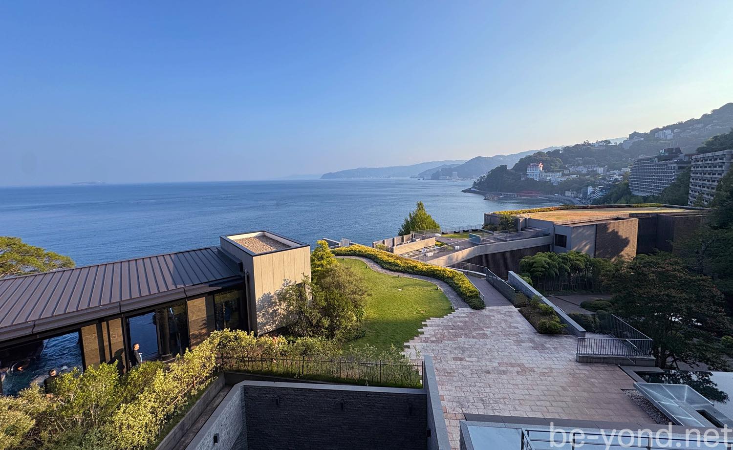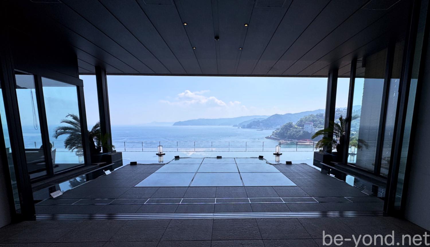 ロビーフロアから続く「眺望テラス」に足を踏み入れると、目の前に相模湾の大パノラマが飛び込んできました。