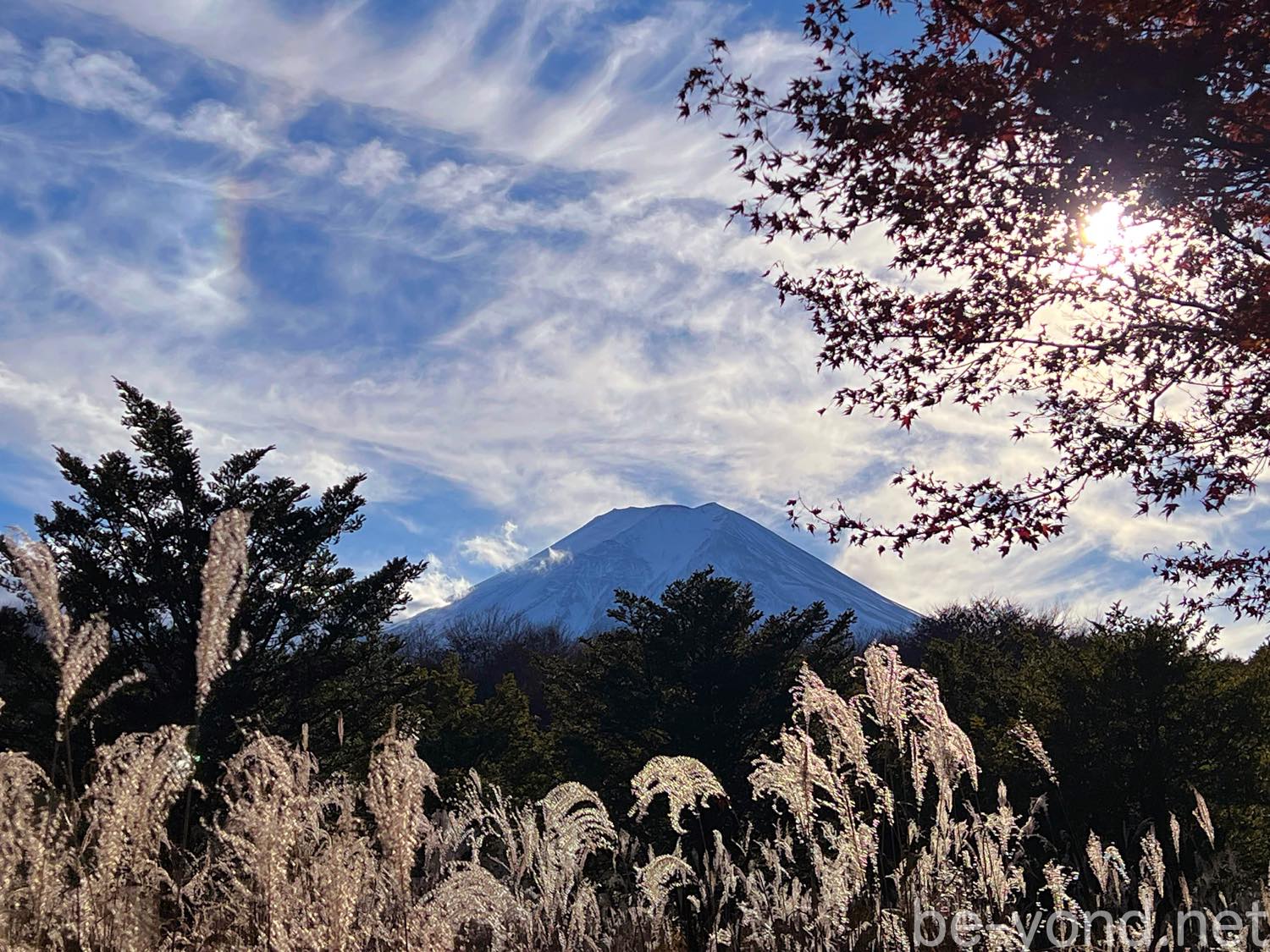 ススキが揺れる先に富士山が綺麗に見えます。小さな虹も見えました。