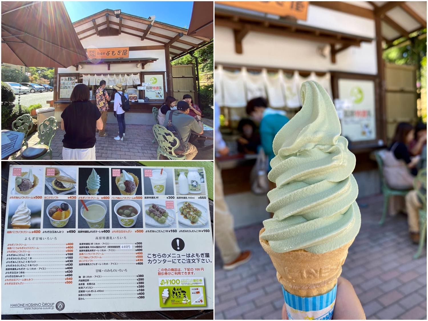 銀の穂の会計時にいただいた割引券で、すぐ前にある甘味処「よもぎ屋」でよもぎソフトをいただきました。他にも高原特濃乳を使った高原バニラソフトやカフェオレ、よもぎ団子や白玉あんみつなどの甘味メニューがあります。食後のちょっとしたデザートにGOODです。