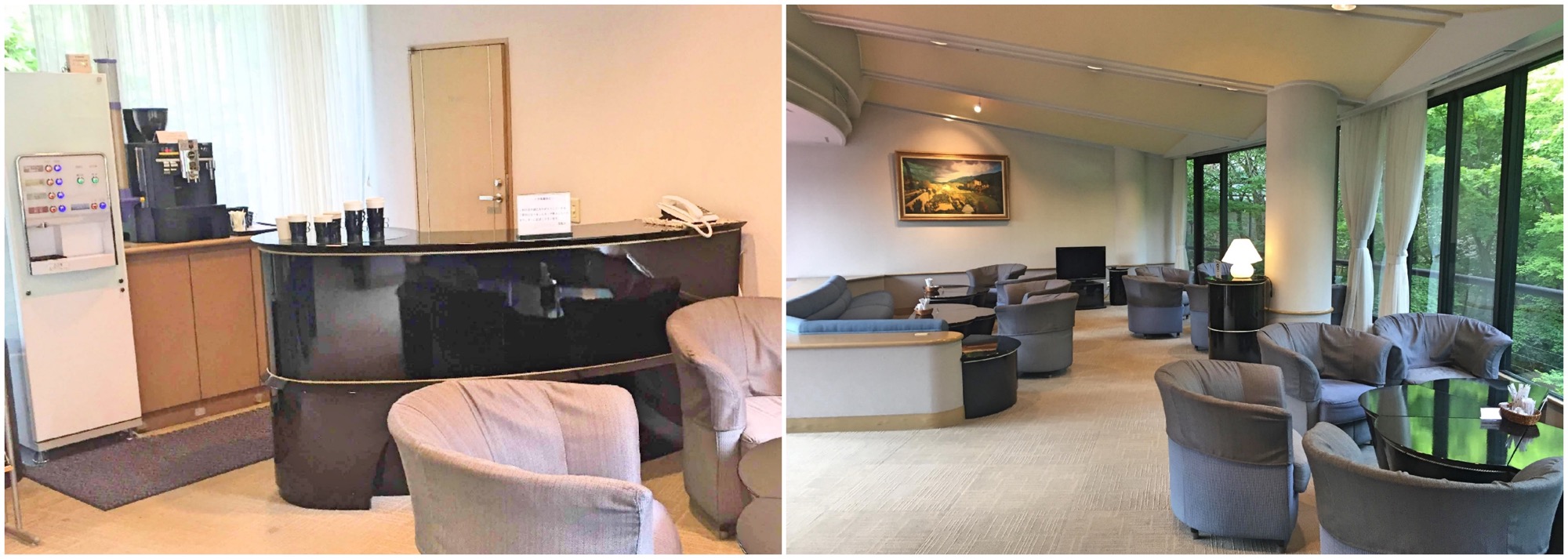 15分前ならすぐに部屋に入れるという予想でしたが、フロントで食事の確認や館内の簡単な説明を受けたあとは、一旦ラウンジへ案内されます。