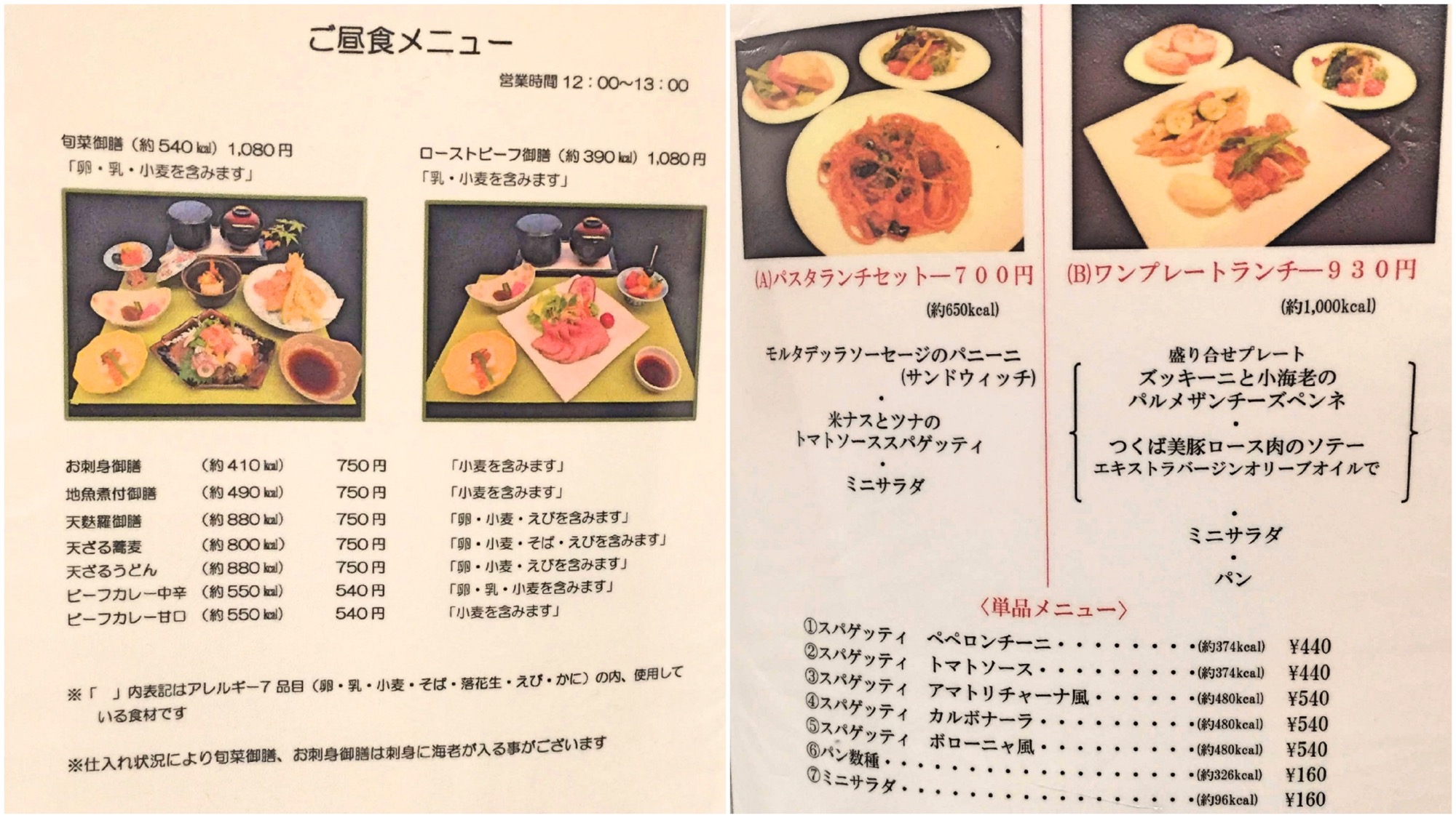 宿泊した翌日に和奏林のランチをいただきました。注文したのは、旬菜御膳とローストビーフ御膳。このゴージャスな内容で1080円とはビックリ!学食みたいな料金で豪華なランチがいただけます!(写真下は2019年6月現在のメニュー)
