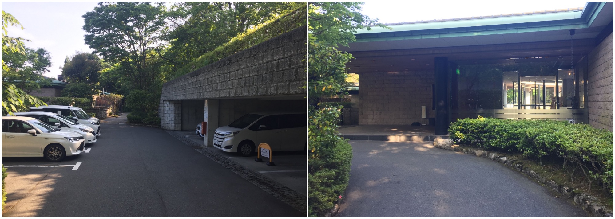 トスラブ箱根和奏林の駐車場とフロント入口付近