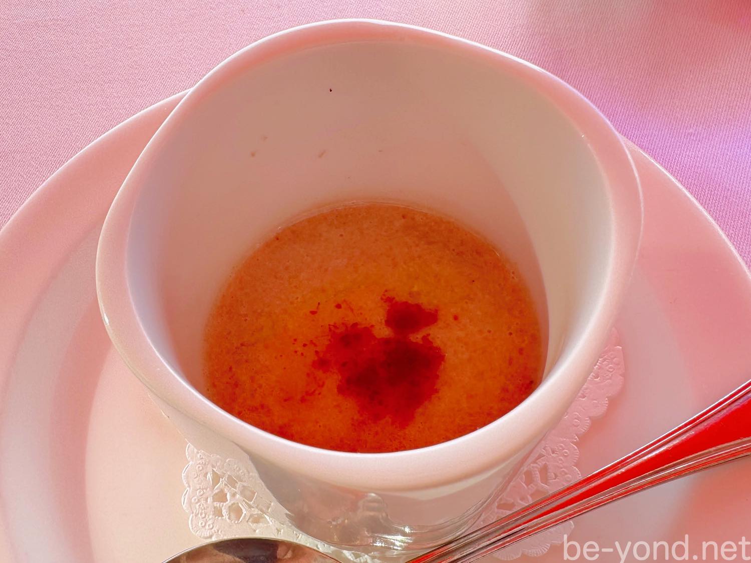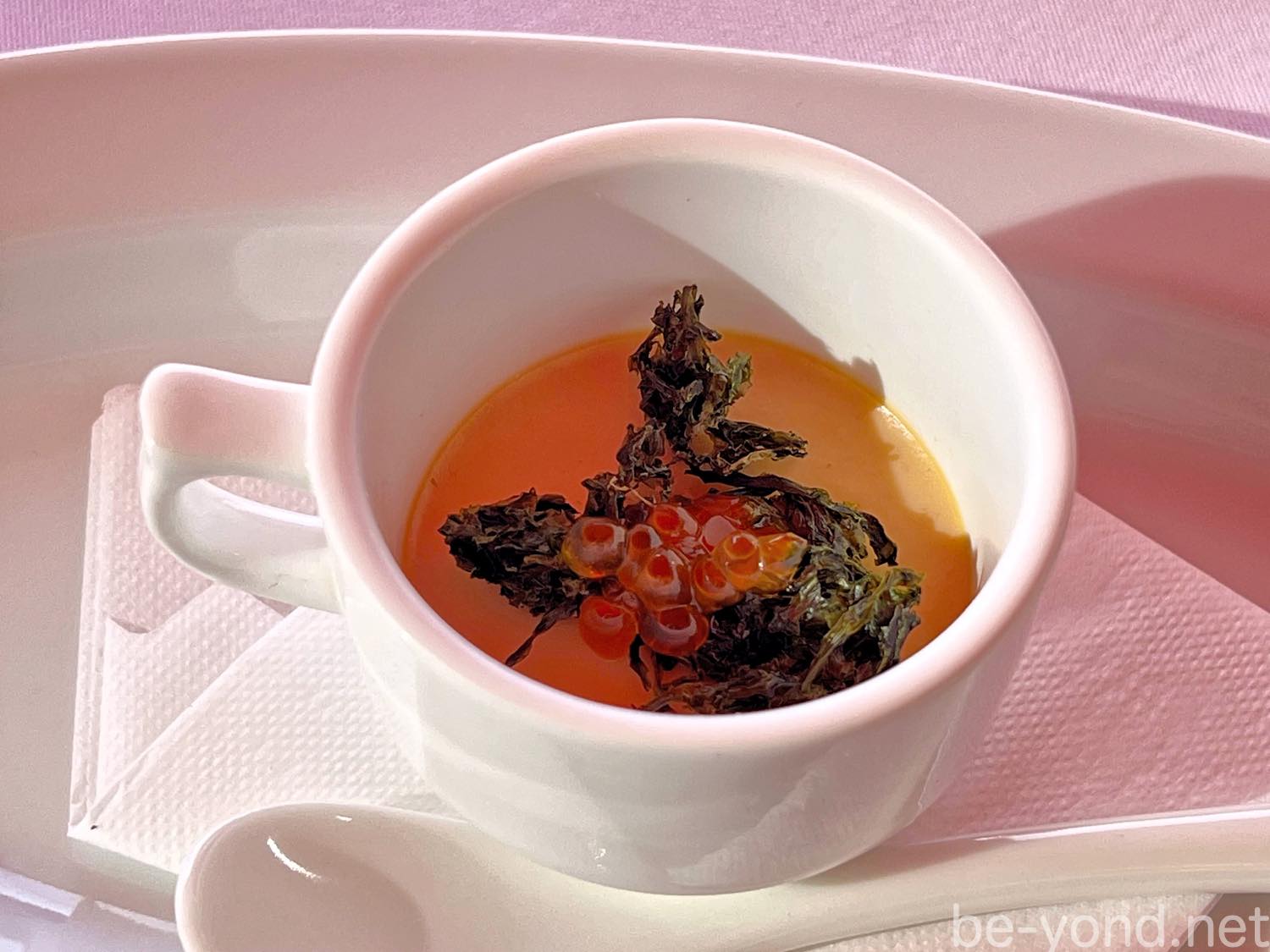 前菜のあとの冬のランチは、パウダー状にした生ハムとオリーブオイルがかかった蓮根のポタージュ。泡々な食感が良い!