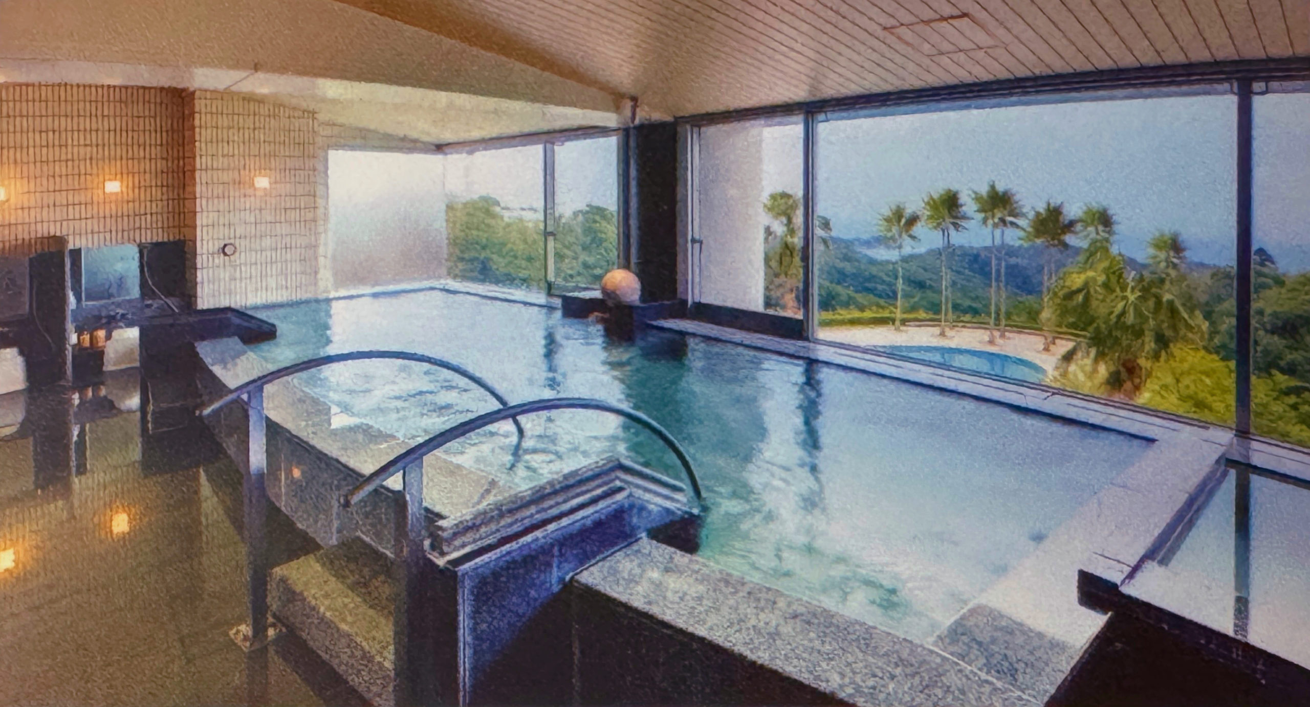 内湯は濃溝温泉(千寿の湯)からの運び湯で、加水・加温を行う循環ろ過式。大きな窓越しに太平洋を望み、朝夕で異なる景色を楽しめるのも魅力です。混雑も少なく、特に早朝と夕方はゆったりと入浴することができました。