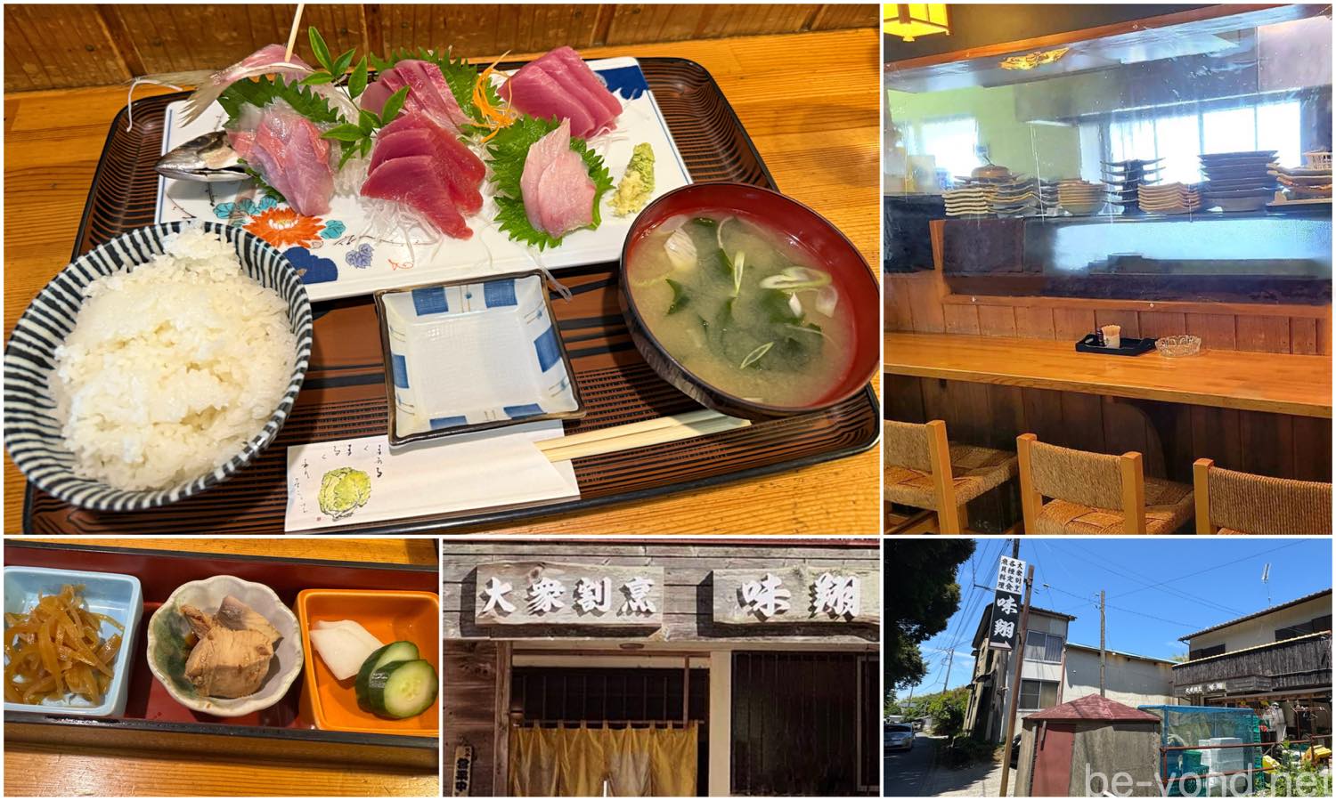 木の温もりを感じる落ち着いた店内でいただいたのは、地元で水揚げされた新鮮な魚の刺身定食。ぷりっとした身に脂ののった切り身は口の中でとろけるようで、あら汁仕立ての出汁のきいた味噌汁も美味しい。小鉢に添えられた煮物や漬物まで丁寧で、リーズナブルながらとても贅沢な昼食でした。地元の家族連れも多く、担々麺も人気のようで、ぜひ再訪したいお店です。