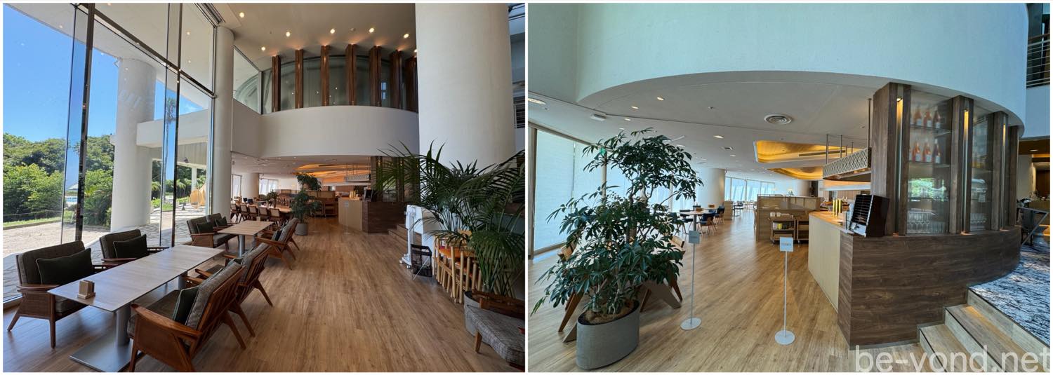 ラウンジの奥にはビュッフェレストラン「ラ・ジュール」、その上の階にフォーマルレストラン「旬彩」があります。