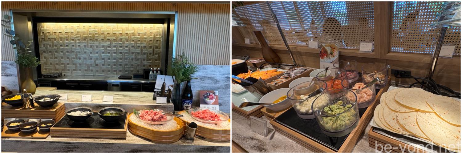 具材が自由に選べる海鮮丼や、豊富な具材のトルティーヤなどもありました。