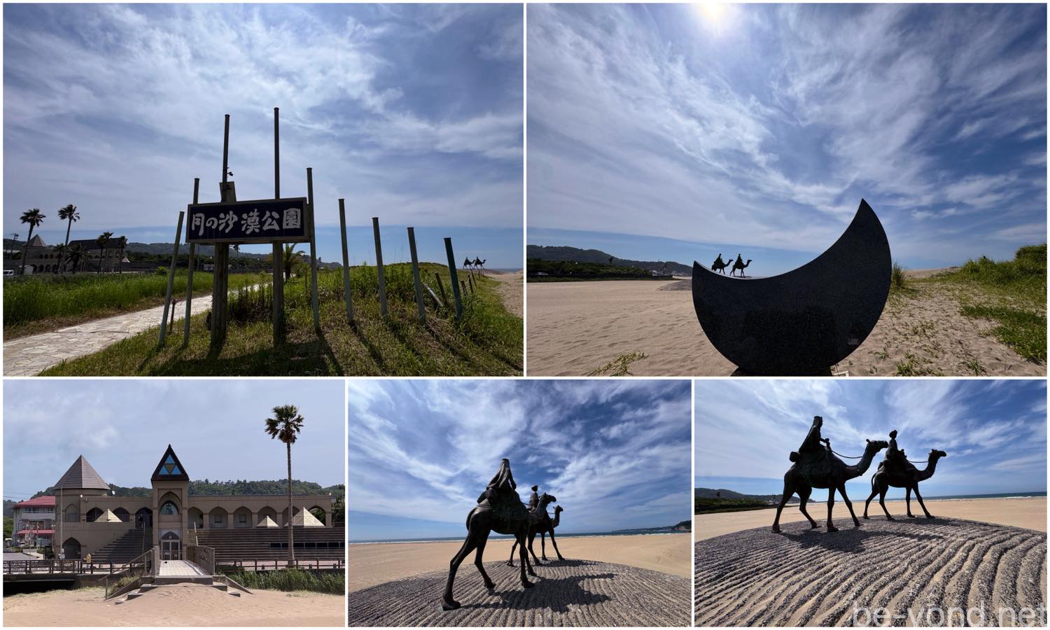 こちらは、童謡「月の沙漠」の舞台として知られる「月の沙漠記念公園」。御宿海岸に隣接した公園で、白い砂浜に立つラクダと旅人のブロンズ像は、童謡「月の沙漠」の世界観をそのまま切り取ったようで、思わず見入ってしまいます。詩情あふれる風景が心に染みわたり、どこか異国に迷い込んだような気分で砂浜を歩きました。