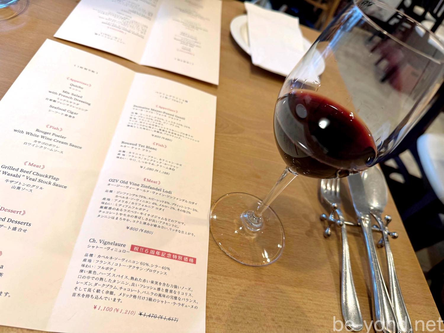説明を聞くと6周年記念特別価格という「シャトー・ヴィニュロー」に興味が湧いたものの、フランスワインは重めの印象が強く軽めのワインの方が好みなので、今回はカリフォルニアワインの「OZV オールド ヴァイン・ジンファンデル・ロダイ」をチョイスしました🍷
