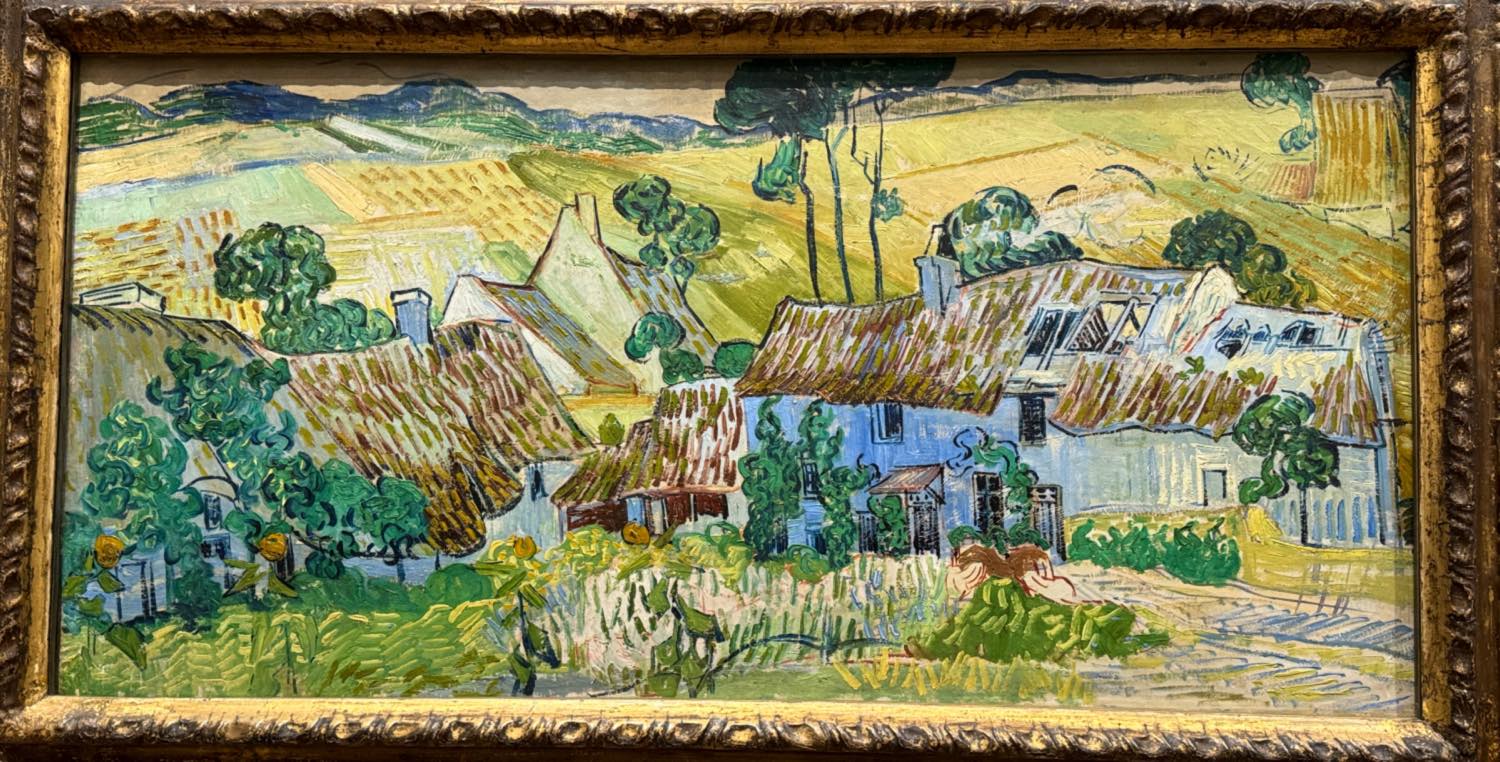 未完成とされる「オーヴェルの近くの農家」は、ゴッホが亡くなる約1か月前に描かれたという作品。人生最後の数か月を過ごしたパリ北方の小さな町オーヴェルの風景で、ゴッホは苔むした茅葺き屋根をとても気に入っていたといいます。