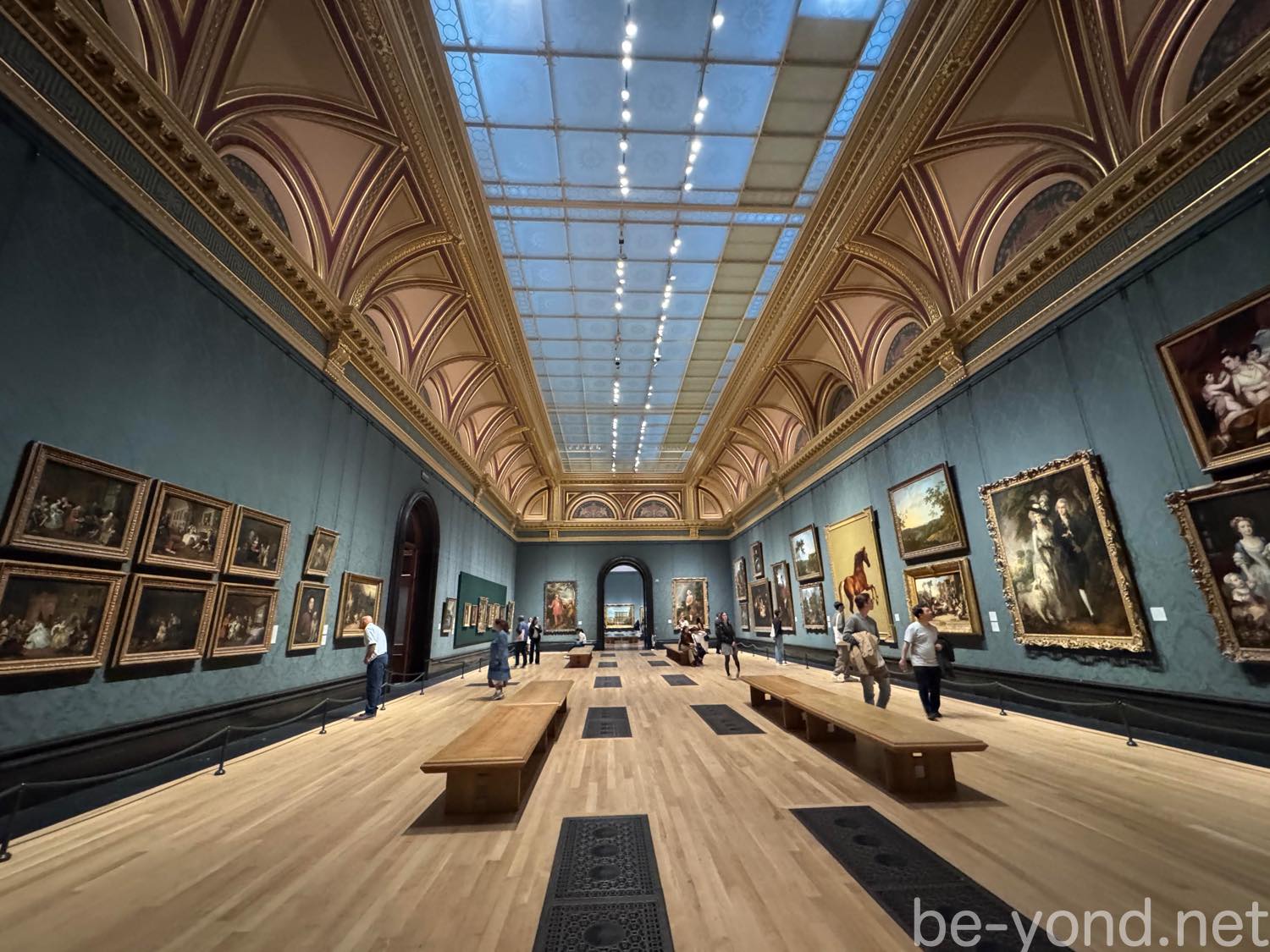 「Room 34」は、18世紀後半の英国絵画を集めた展示室で、ジョージ・スタッブスやゲインズバラ、ターナーなど英国系画家の作品が並びます。ブルーの壁と天井の上品な装飾が美しい部屋です。