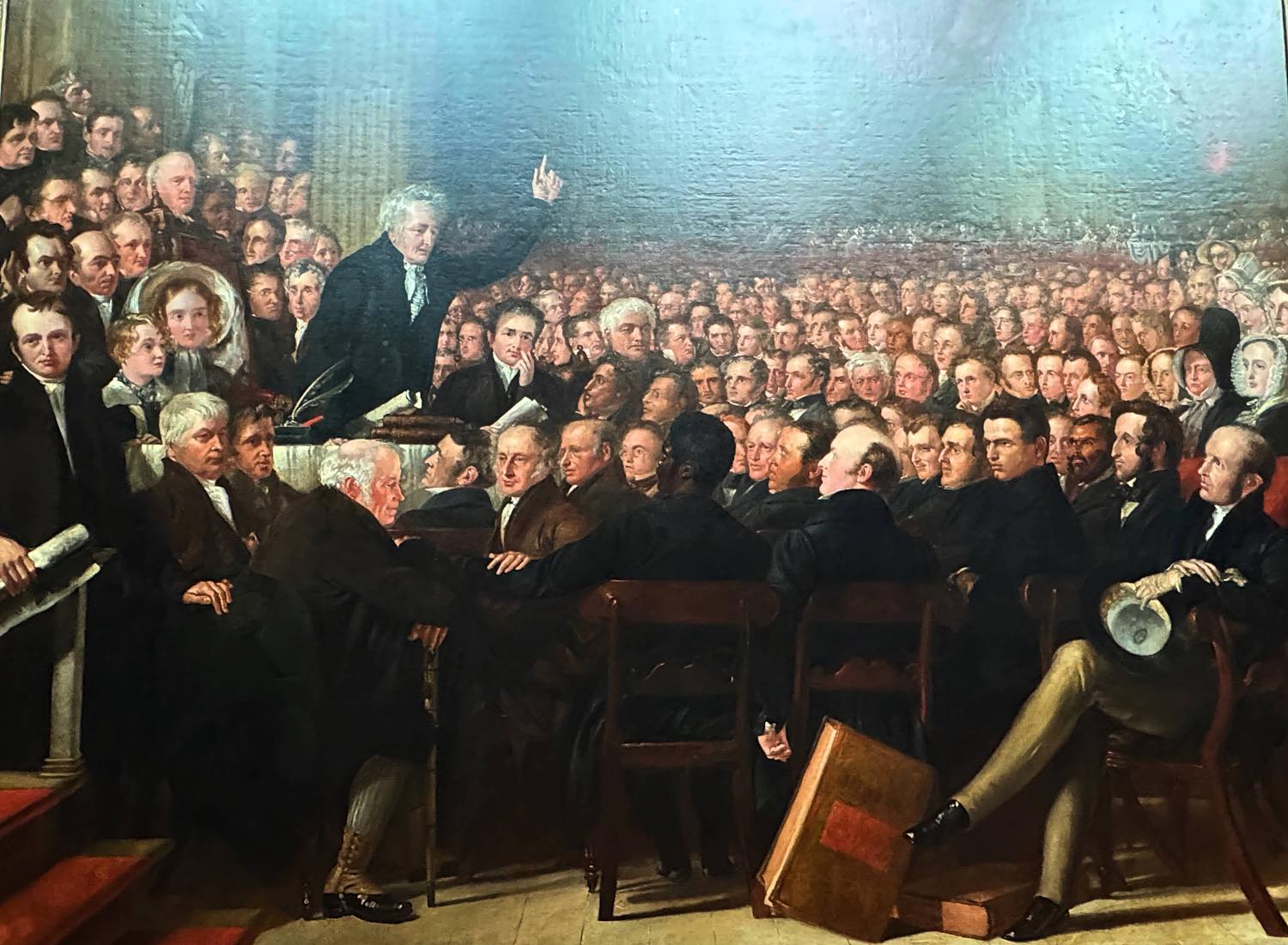ほぼ実物大の肖像を多数組み合わせたという「ジョージ・ヘイター(George Hayter)」による歴史的場面の集団肖像画です。