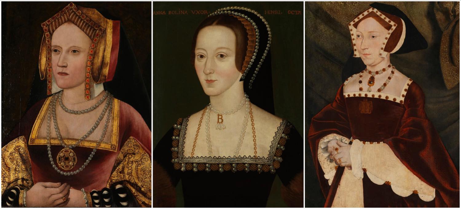 ※写真左から「キャサリン・オブ・アラゴン」(メアリー1世の母)、「アン・ブーリン」(エリザベス1世の母)、「ジェーン・シーモア」(エドワード6世の母)