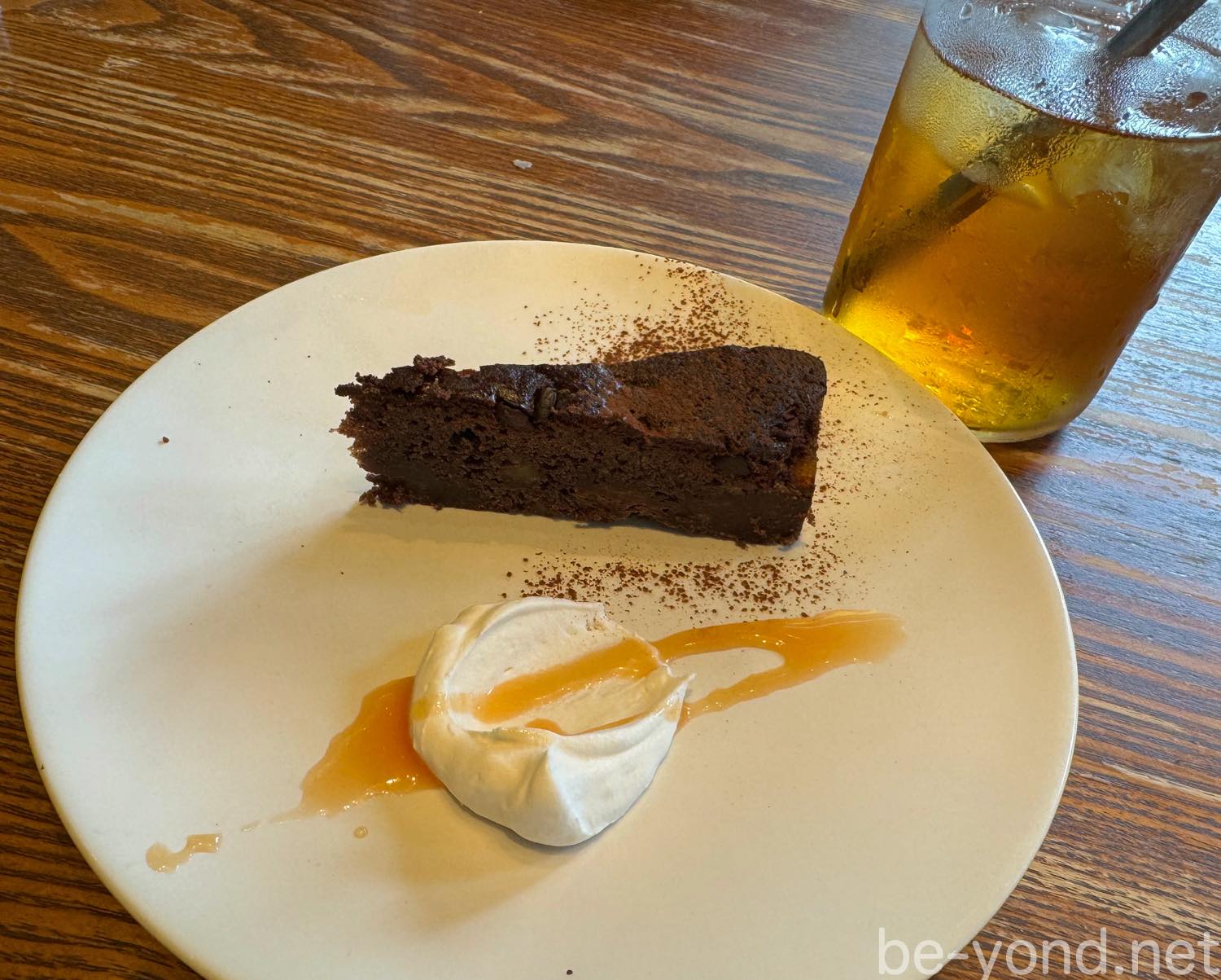この日のデザートは、ホイップ付きの濃厚なチョコブラウニー。すべて美味しくいただき大満足です🎶 いつも混んでいるので、やはり事前予約は必須ですね!