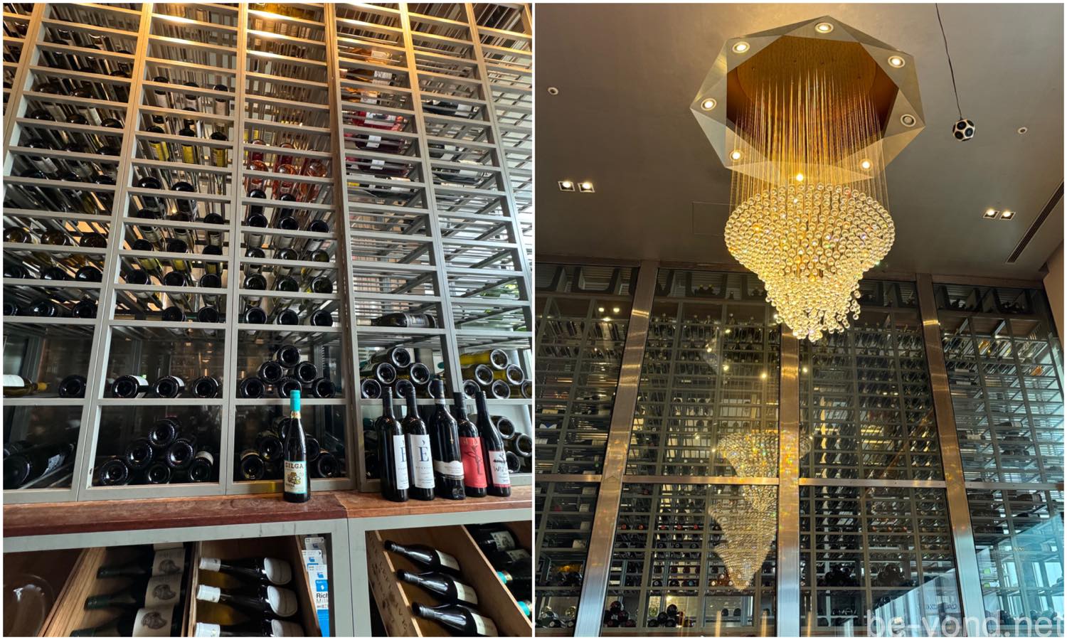 細いエントランスの両サイドには、天井まで続く圧巻のワインセラー!ワインバーというだけあって、各種ワインがズラリと並んでいます。