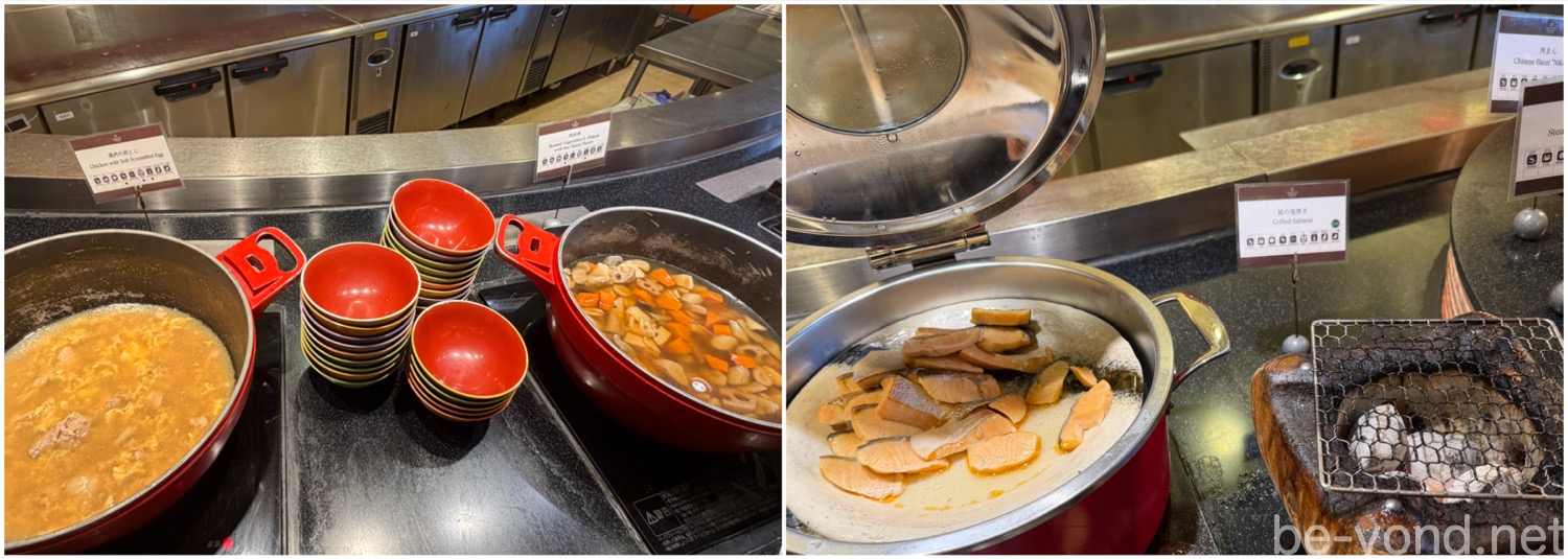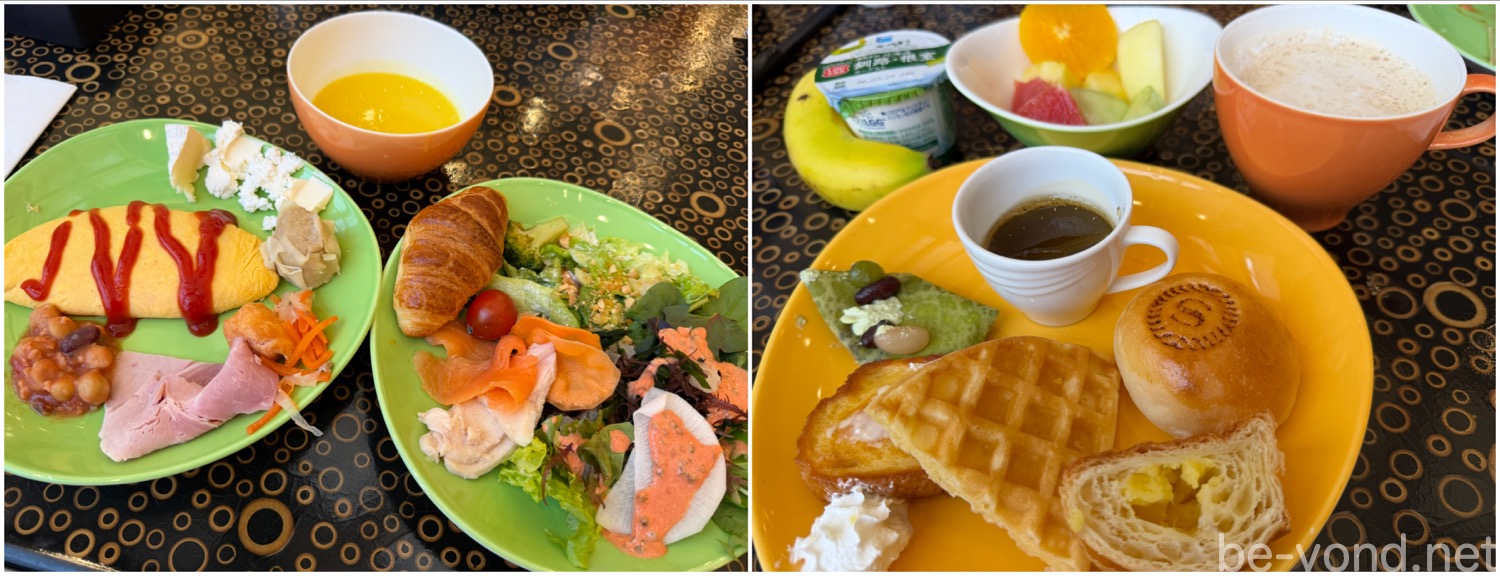 グランカフェの朝食ビュッフェは、多くのゲストがいても圧迫感がなく思いのほか心地よいひとときでした。それぞれの料理には、細かくわかりやすいアイコンでアレルギー表示されているので、お子様連れでも安心。こうした細やかな配慮と開放的な空間のおかげで、最後までリラックスして食事を楽しめます。お腹も心も満たされ、ゆったりとした時間を満喫できました。