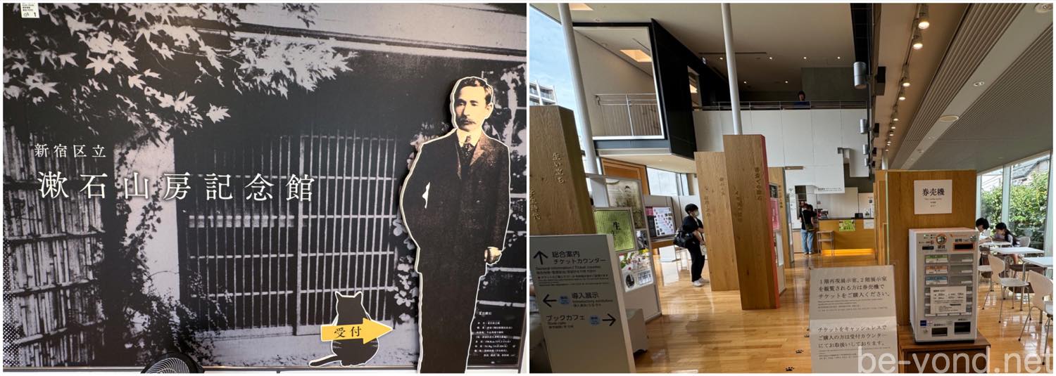 漱石山房記念館のエントランスを入ると夏目漱石の等身大パネル(身長は159cmだったと言われている)が出迎えてくれました。