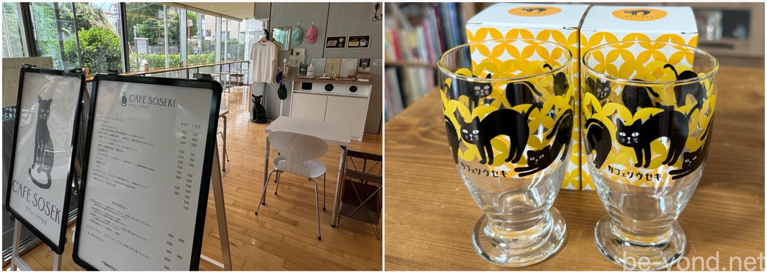 漱石の愛した猫をモチーフにしたグッズコーナーもあり、帰りに愛らしいデザインの猫グラスをゲットしました♪