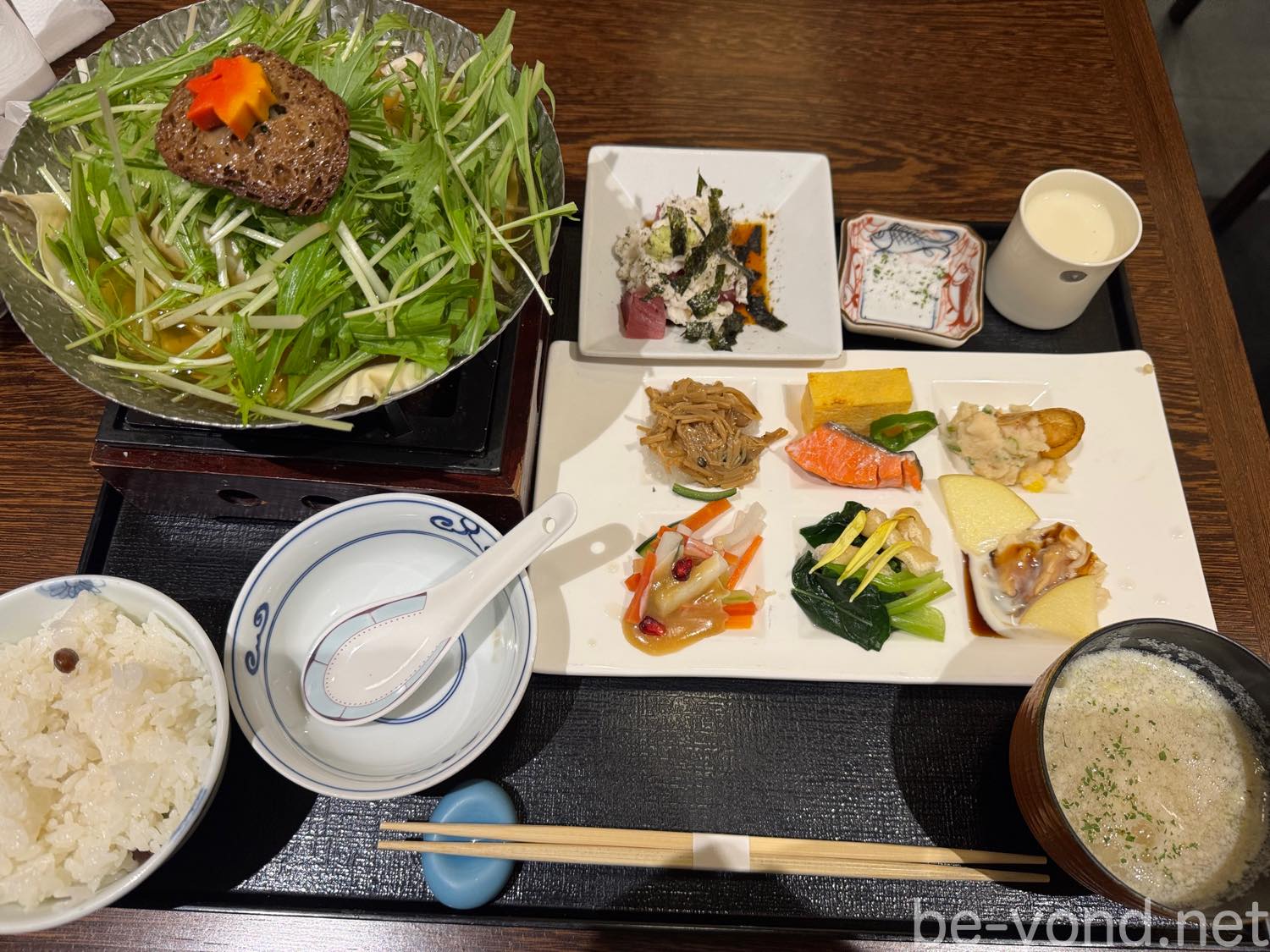 「千寿ゆば御膳」は、ゆば鍋をメインに、朝採り豆乳、小鉢6種盛、鮪の山かけ、天ぷら、豆ごはん、呉汁がそろう上品な和定食。素材本来の味わいが引き立つ品々が並び、体にやさしい和の味をゆっくりと楽しみたいときにぴったりの御膳です。