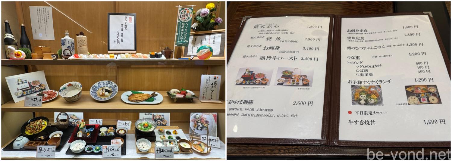 ランチメニューは、彩り豊かなお重の「灯火点心」や「千寿ゆば御膳」をはじめ、「お刺身定食」「焼き魚定食」「うな重」「牛すき焼丼」など多彩なラインナップ。本格料亭風の味わいを、よりカジュアルなスタイルで楽しめるのが魅力です。