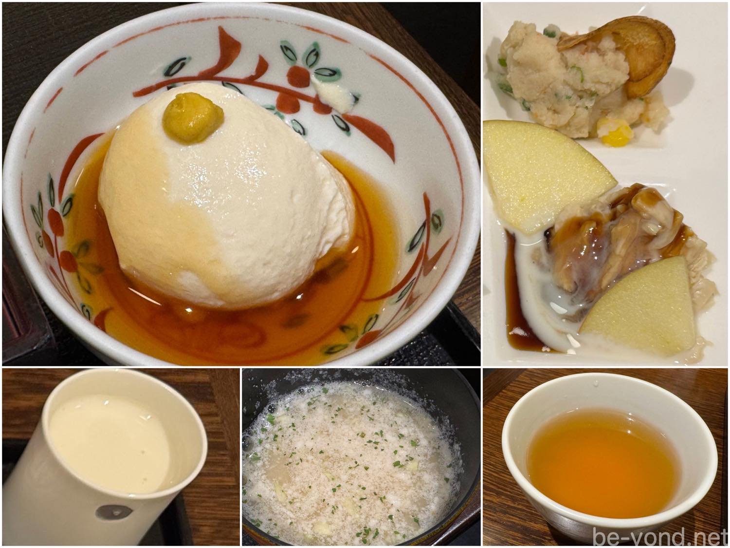 自家製の湯葉や寄せ豆富をはじめ、刺し身湯葉、卯の花、豆茶、朝採りの濃厚な豆乳、さらに大豆をすりつぶした呉汁や豆ご飯まで、豆腐・湯葉専門店ならではの豆へのこだわりが随所に感じられる内容です。