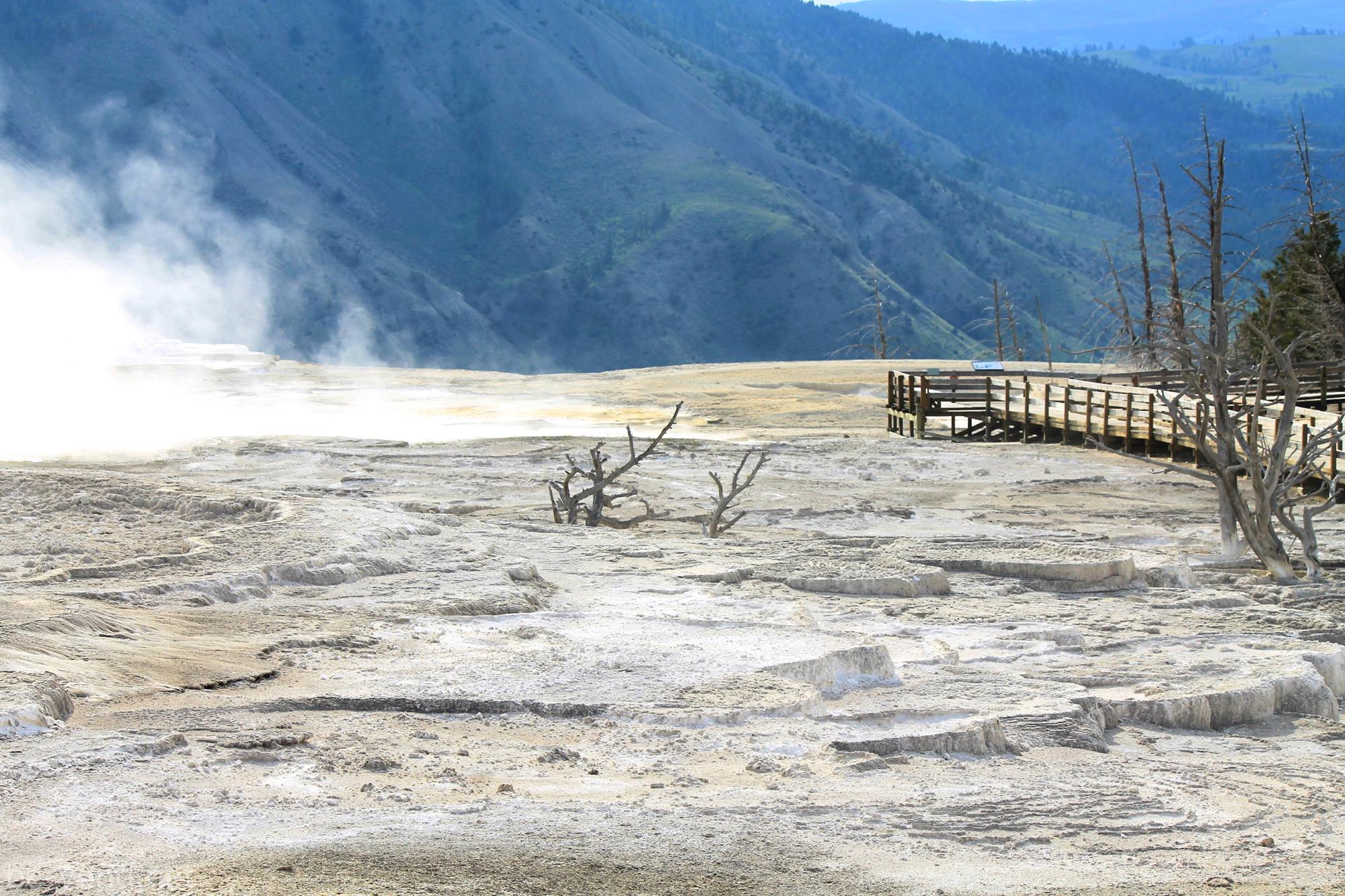 【イエローストーン国立公園】美しい石灰棚が広がる景勝地「マンモス ホットスプリングス テラス」
