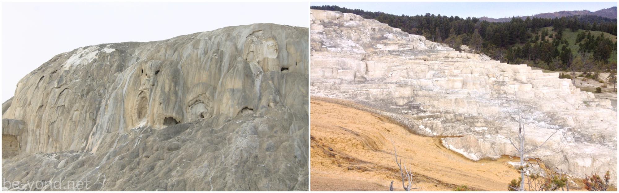 巨大な石灰華「ミネルバ テラス」と「マウンドテラス」