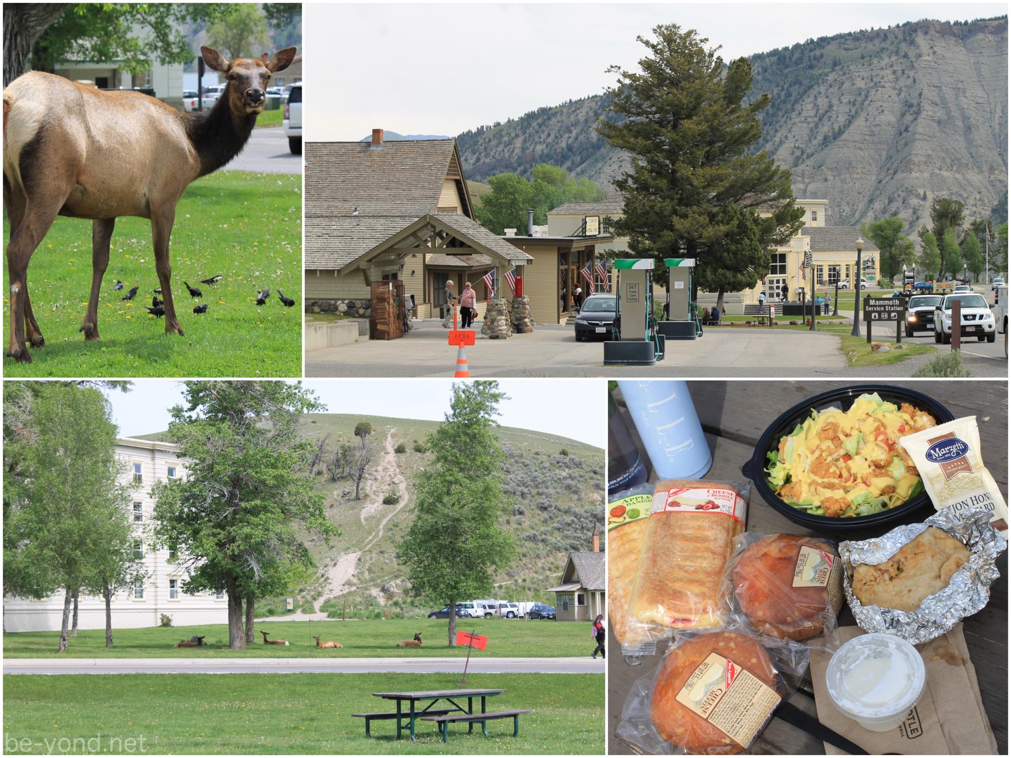 マンモスカウントリーの中心地となるヴィレッジには、ホテル、レストラン、ジェネラルストアー、ビジターセンターなどのほか、パブリックトイレや公園があります。時間をセーブしたい人はテイクアウトして公園のピクニックテーブルでのランチがオススメ。野生動物がのんびりと過ごす姿など、ほのぼのとした風景を眺めながらのランチはとっても気持ちが良かったです。